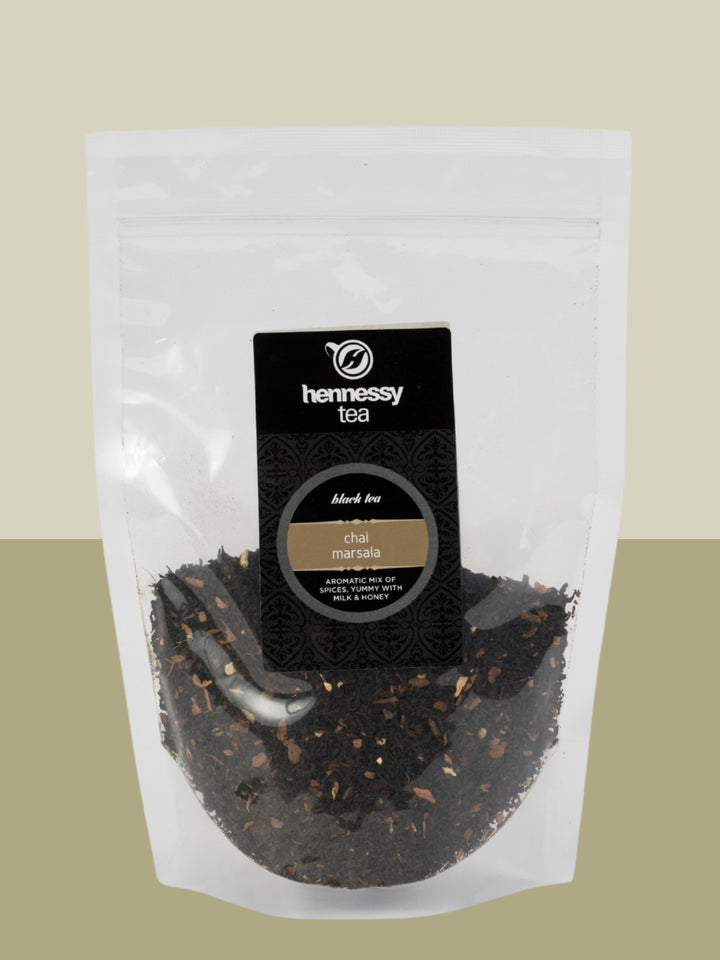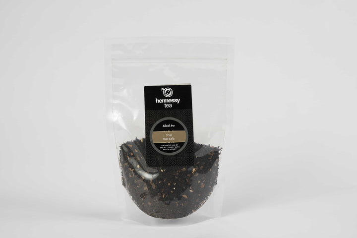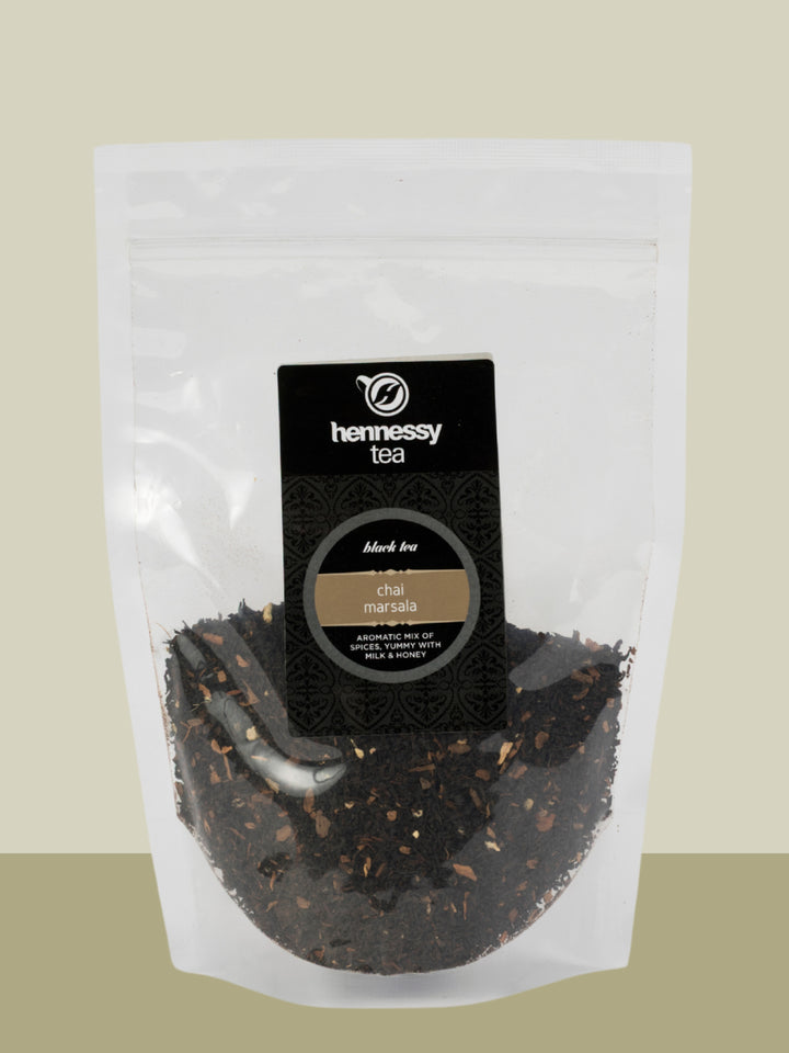 An aromatic and spicy chai blend with cloves, cardamom, cinnamon, and nutmeg. Enjoy with milk and honey for a warming, flavorful experience.