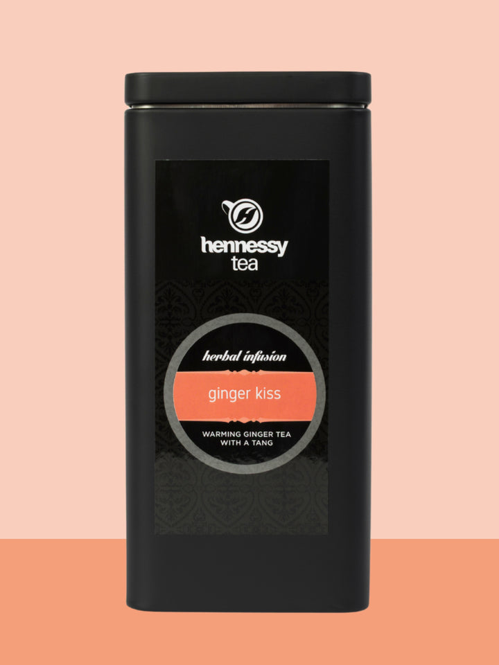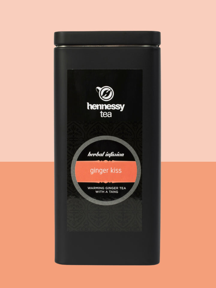 A stylish black storage tin created especially for our Ginger Kiss tea. A great way to keep tea fresh that also looks good (Tin sold separately - no tea included).